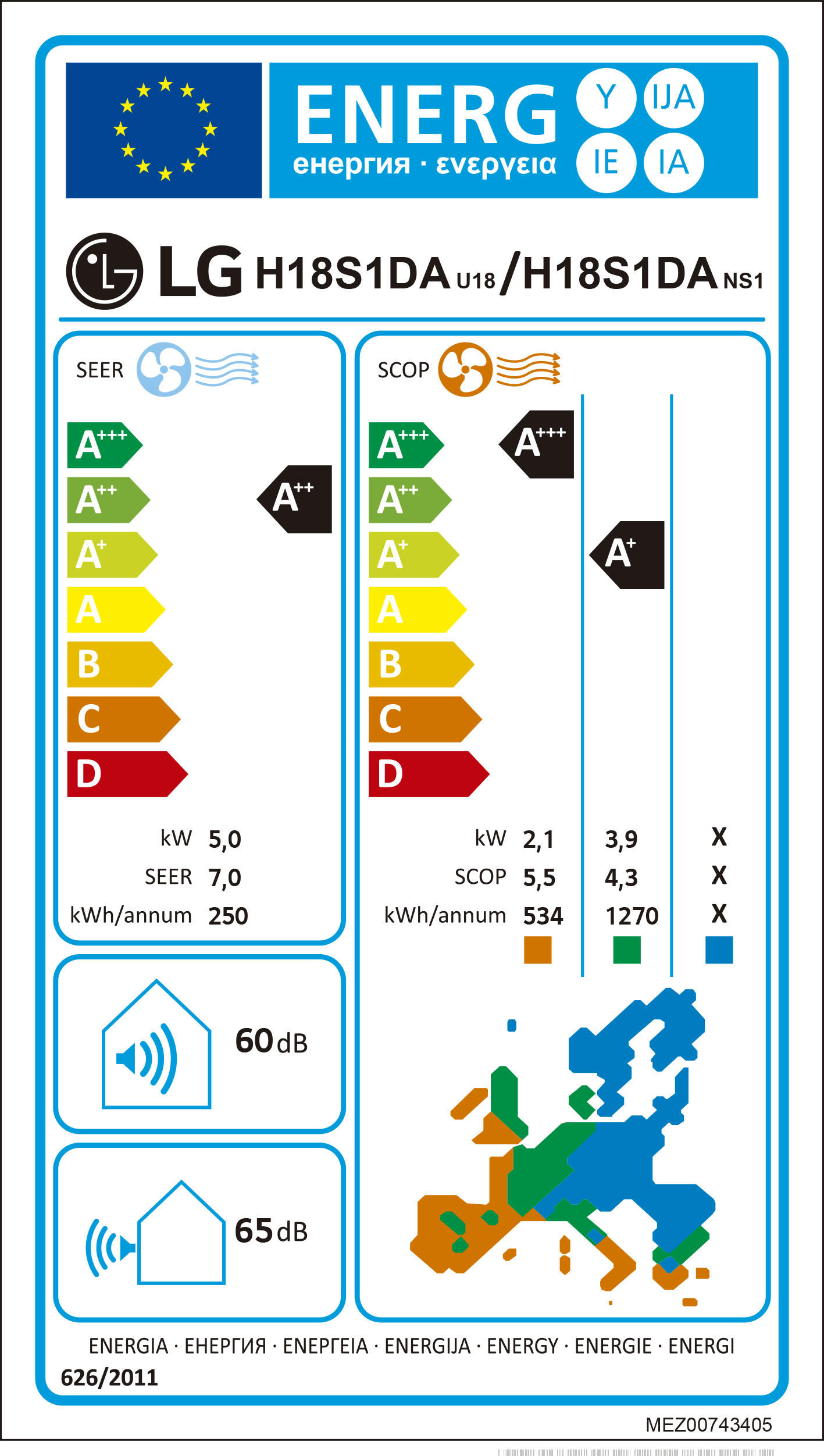 Classificação energética SEER/SCOP: 7/4,3 – A++/A+