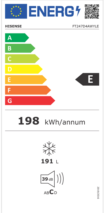Classe de eficiência energética: E Caoacidade líquido: 191lts Consumo de energia anual: 198kWh/ano Capacidade de congelação: 10kg/24h Classe climtática: N, T, ST, SN Classe emissão ruído: C Dimensões (axlxp): 853x891x557mm Cor: Branco