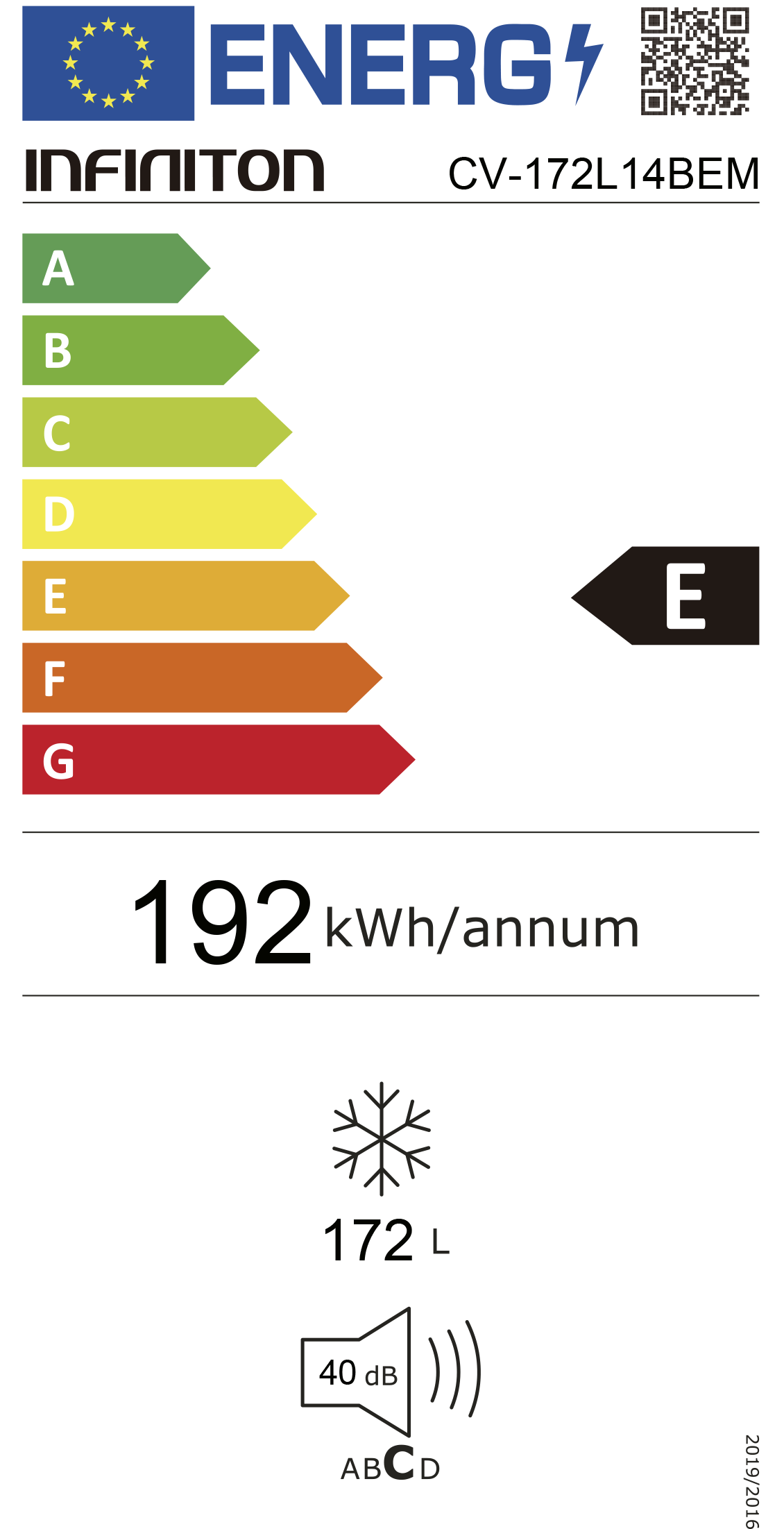 Consumo energético anual: 192 kWh/ano
