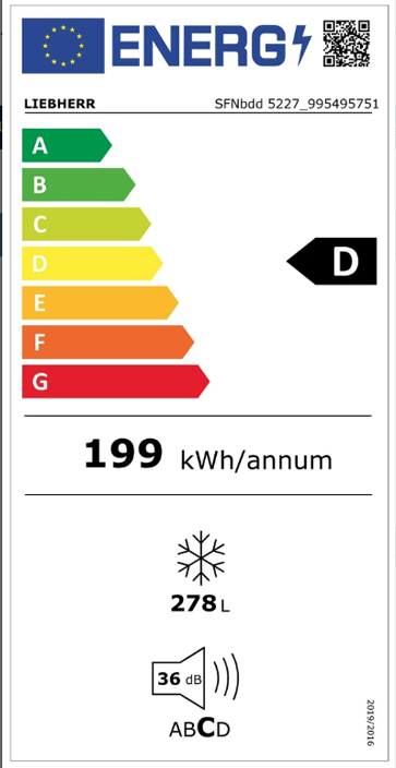 Consumo de energia ano / 24 h: 199 / 0,545 kWh