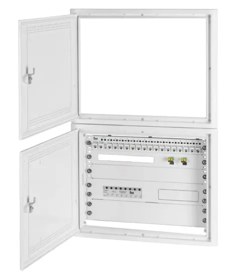 Para aplicação em caixa Base duplaInclui:2 x Aro e PortaKit Perfis 6UPainel ATIAcessórios RC-FOTomada 220Vac