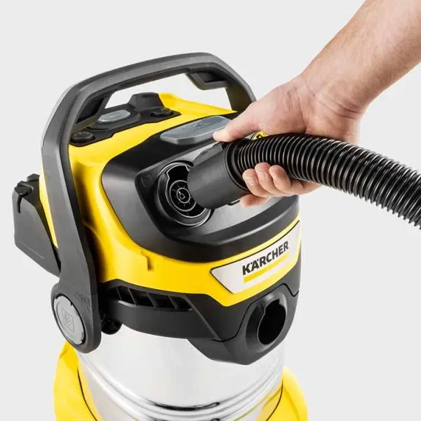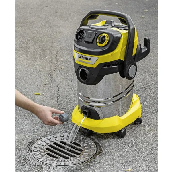 Equipamento: mangueira de sucção, (2,2 m, ID 35) com cabo antiestático curvo e removível; tubo de sucção, aço inoxidável (0,5 m); ferramenta de piso molhado/seco, comutável; bocal de fenda; mangueira de sucção de ferramenta flexível; adaptador para conectar ferramentas elétricas; filtro plissado plano (em cartucho de filtro patenteado); 1 x saco de filtro, lã; Tomada de energia com interruptor automático de ligar/desligar; Função de limpeza do filtro; Interruptor rotativo (ligar/desligar); Controle de poder; Função do ventilador; Posição de estacionamento intermediária da alça na cabeça do dispositivo; Armazenamento da mangueira na cabeça do dispositivo; Espaço de armazenamento para peças pequenas; Alça de transporte 3 em 1 conveniente; Gancho de cabo; Posição de estacionamento; Armazenamento de acessórios no dispositivo; Parafuso de drenagem; Para-choque robusto; Rodízios giratórios, 5 peça(s)