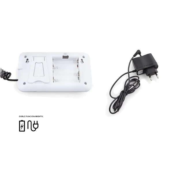 Funciona a pilhas: 4 x 1.5V AA (incluídas) e com adaptador de alimentação 230V – 50Hz