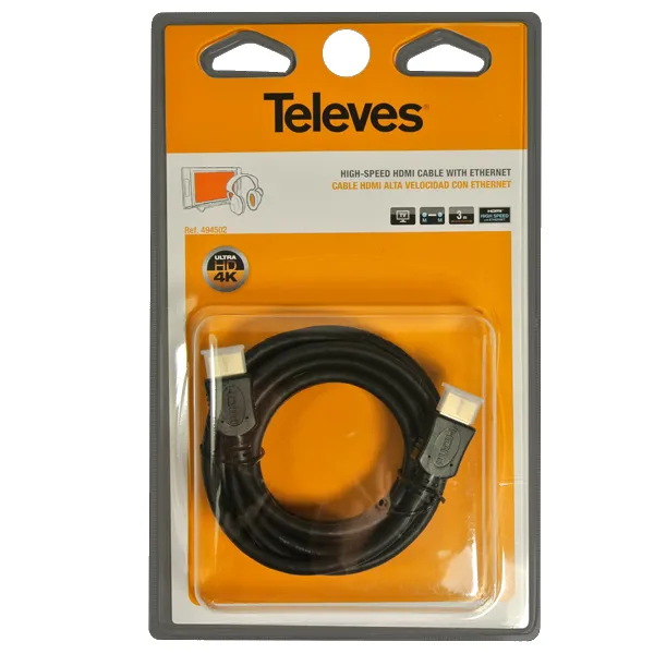 Cabo HDMI de alta qualidade para conectar a uma TV, qualquer equipamento electrónico (receptor de TV, computador portátil, consola de jogos…) e disfrutar os conteúdos em alta definição (HDTV).