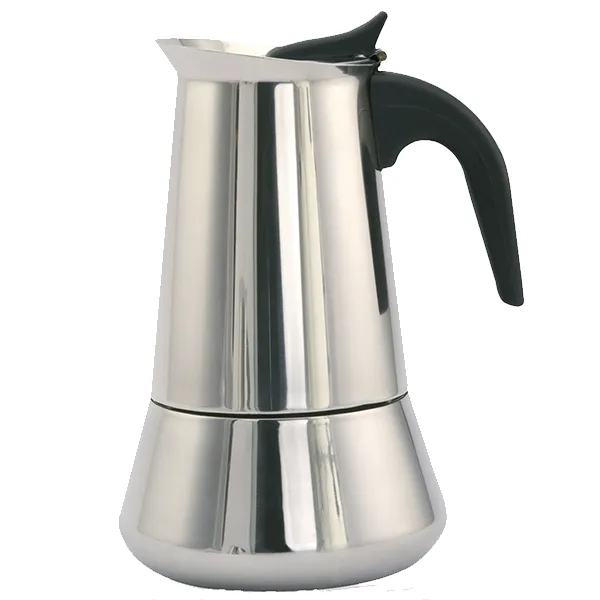 Cafeteira de aço inox. 4 chávenas. Utilização para: gás, elétrico, vitrocerâmica e indução