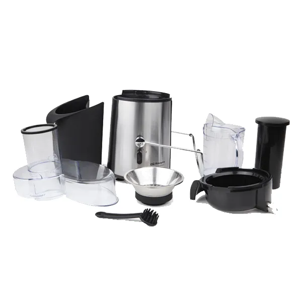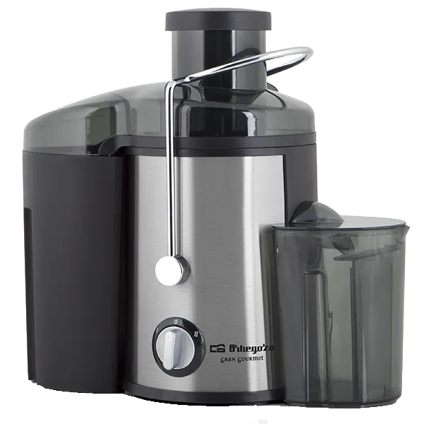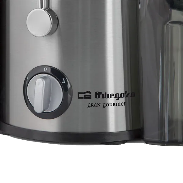 Potência 600W2 velocidadesRecipiente desmontável para polpa e sumoColher e filtro em aço InoxBoca de enchimento extra-largaAcabamento em aço INOXTubo para introduzir peças de fruta e vegetaisLigação: 220-240 V – 50Hz.