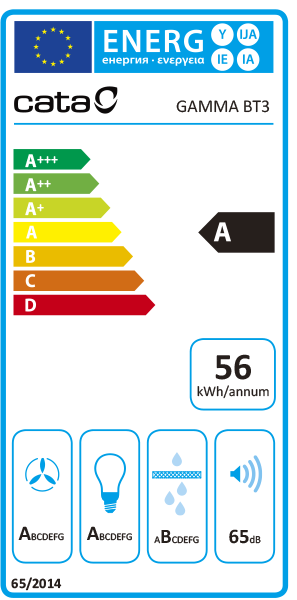 Nível sonoro (Reg.(UE) nº65/2014): 50dB(A), máximo: 65 dB(A)