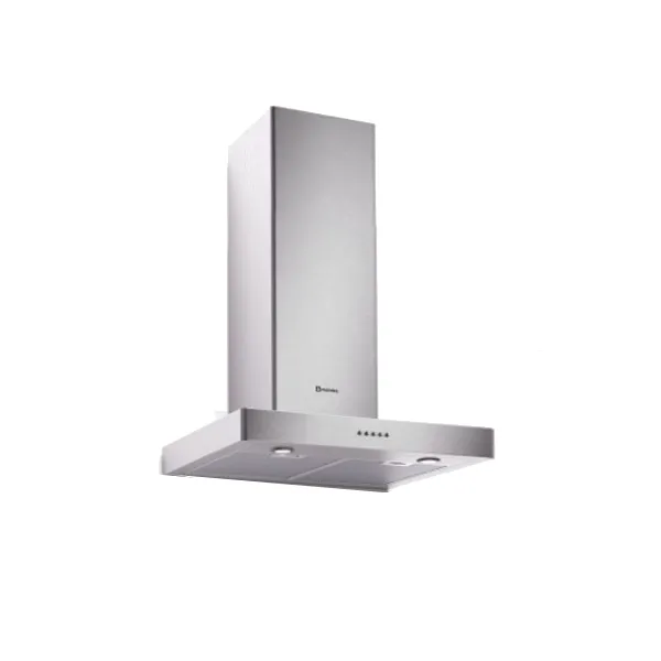 Chaminé decorativa de 60cm Aço inoxidável Comandos por botões Extracção máxima 300 m3/h Lâmpadas de LED Filtro de alumínio lavável Classe energética D