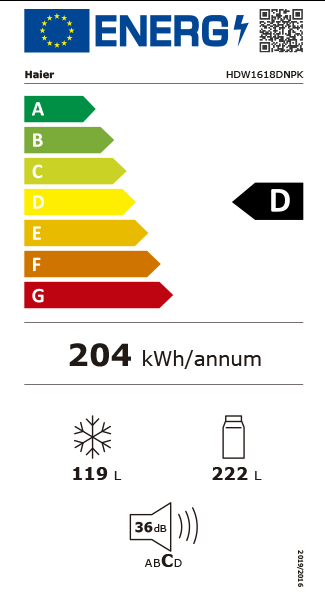 Consumo de energia anual: 204 kWh