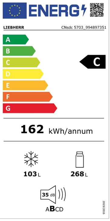 Consumo de energia ano / 24 h: 162 / 0,443 kWh