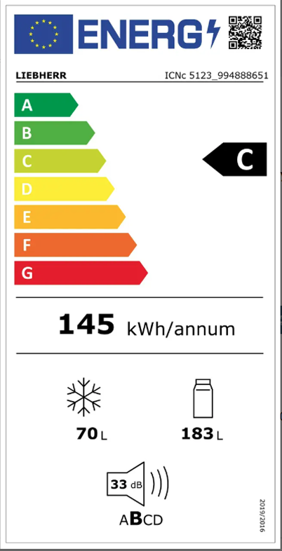 Consumo de energia ano / 24 h: 145 / 0,397 kWh