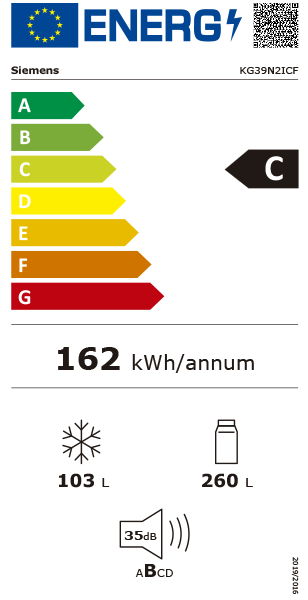 Consumo médio anual de energia em kilowatt-hora por ano (kWh/a): 162 kWh/ano