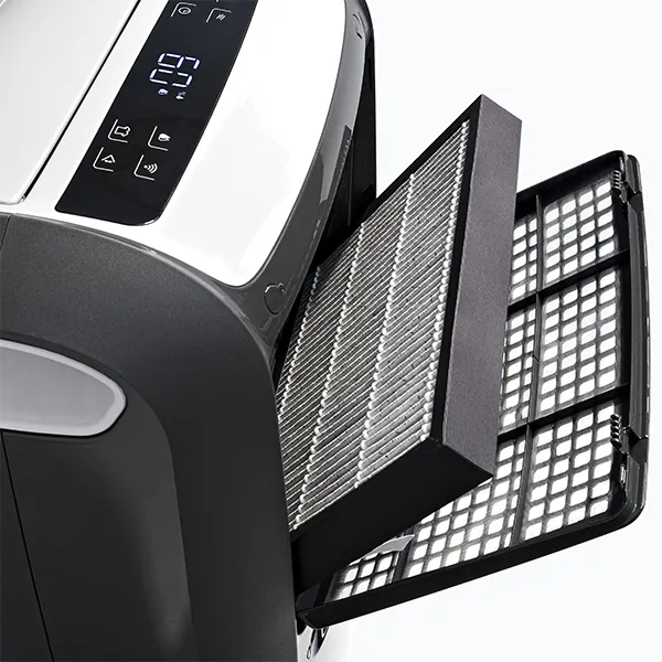 Função Purificador de ar com 4 filtros (EPA; carbono activo; anti-pó e anti-alergias).