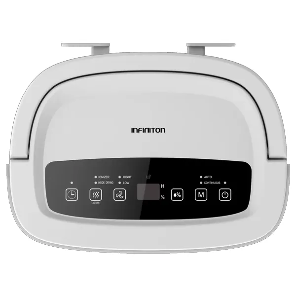 Cor: Branco Depósito de água: 1,8lts Função para secar roupa Potência: 240W Rodas Nível de ruído: 40dB Capacidade de desumidificação: 10lts/dia Alarme anti-transbordo de água Bloqueio para crianças Dimensões (axlxp): 41,6X29,6X21,7mm