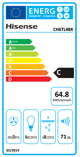 Consumo anual total de energia: 64,8 kWh/ano