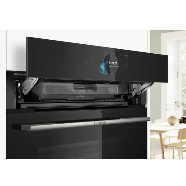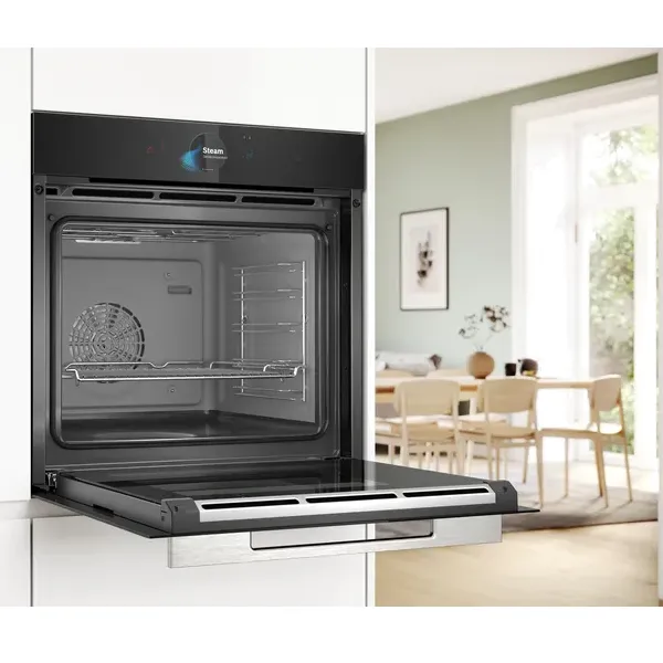 Porta do forno com abertura rebatível, SoftClose (fecho suave da porta), SoftOpen (abertura suave da porta)