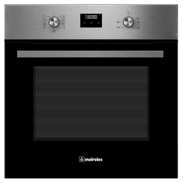 Forno eléctrico ventilado: 9 funções (luz, descongelação, resistência inferior, resistência superior e inferior, resistência superior e inferior com ventilação, grelhador, grelhador com resistência superior, grelhador e resistência superior com ventilação, eco)