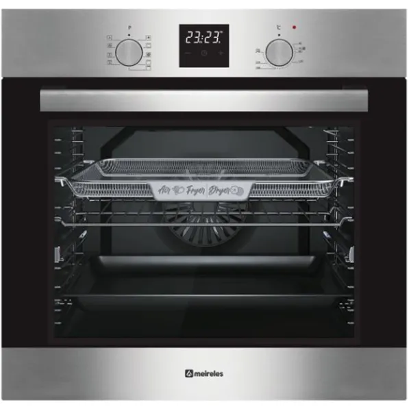Forno eléctrico ventilado: 9 funções (luz, descongelação, grelhador, grelhador com ventilação, resistência superior, resistência superior e resistência inferior, resistência superior e inferior com ventilação, resistência circular com ventilação, limpeza aqualítica)