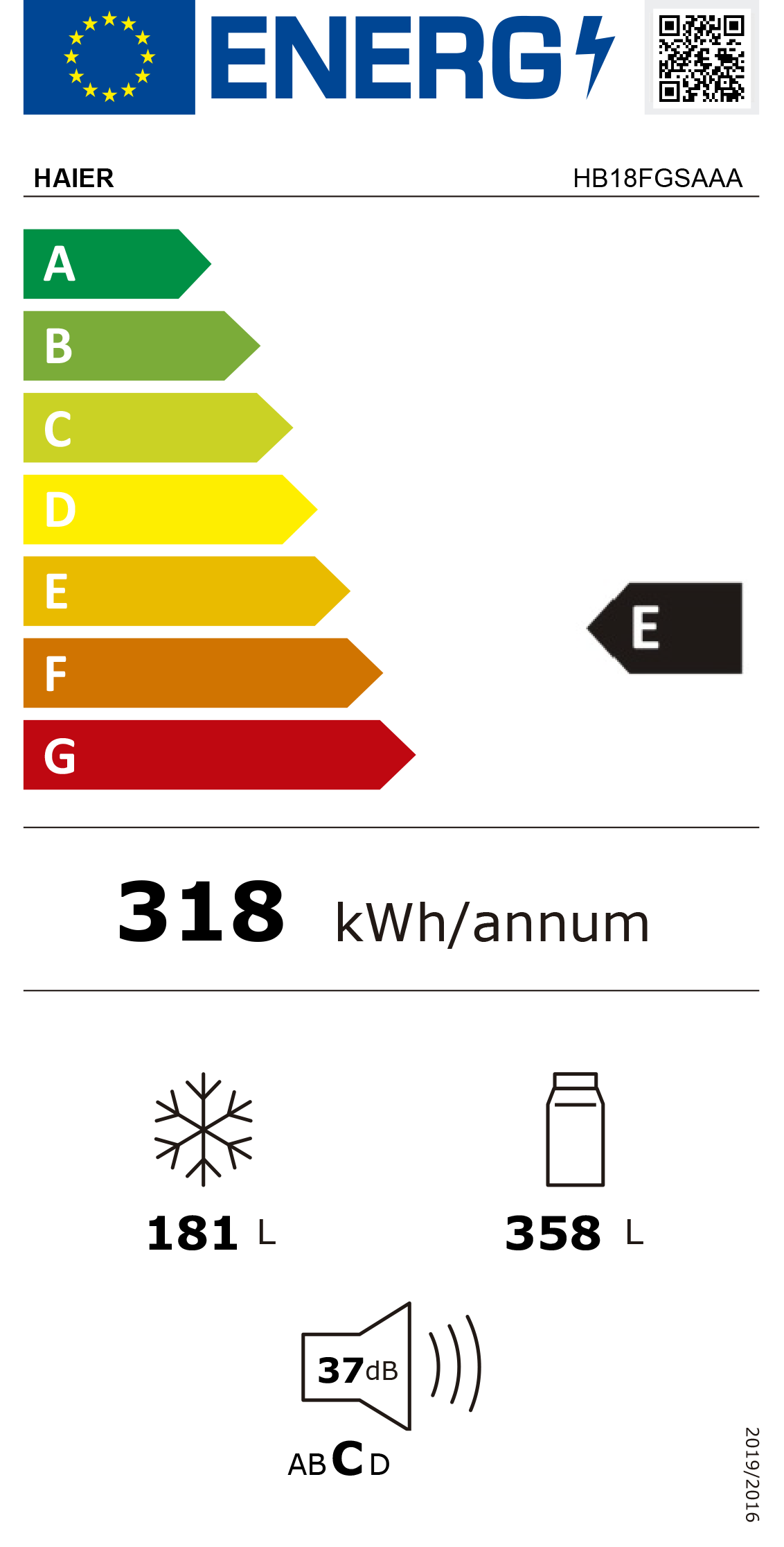 Consumo anual de energia: 318