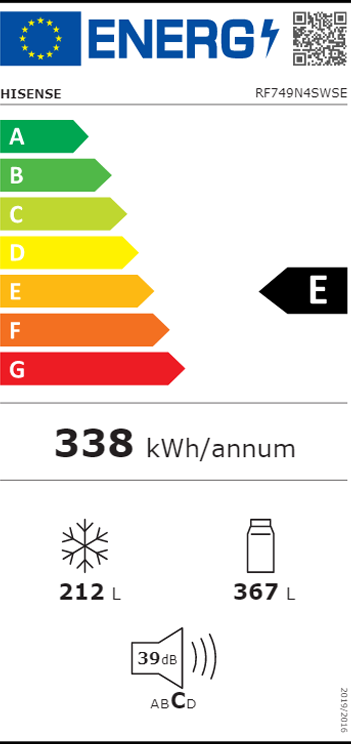 Consumo anual energia: 338 kWh/ano