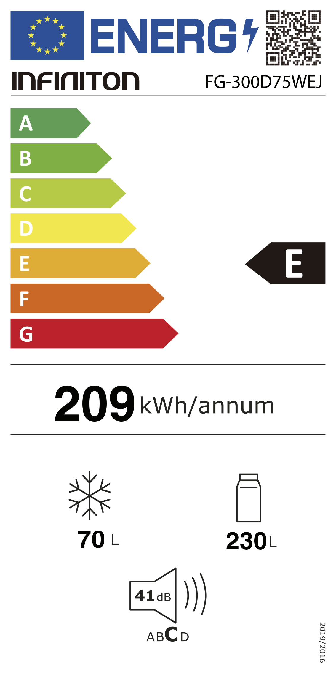 Consumo energético anual: 209 kWh/ano