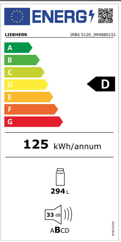 Consumo de energia ano / 24 h: 125 / 0,342 kWh