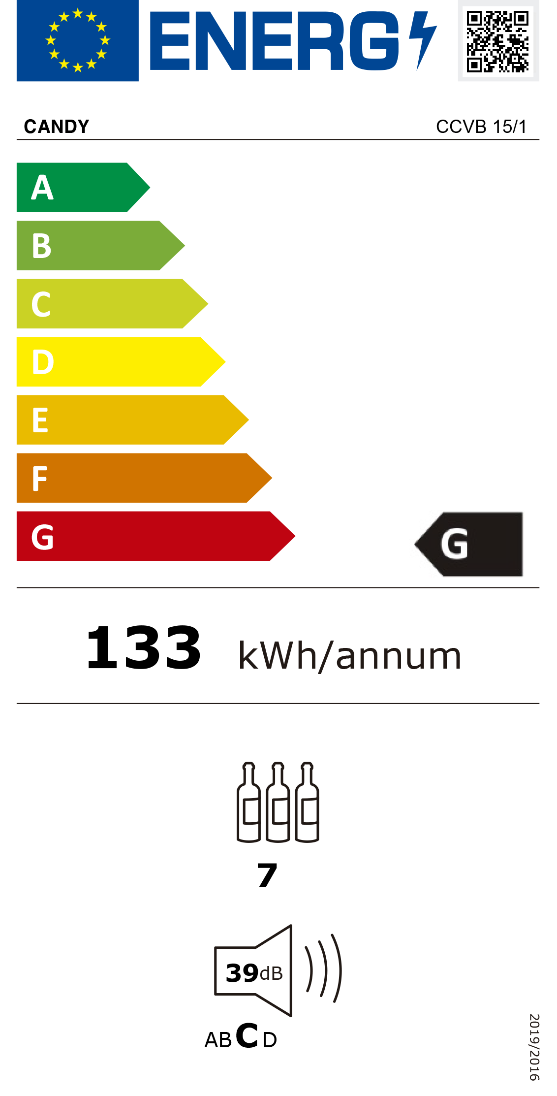 Consumo de energia anual: 133 kWh