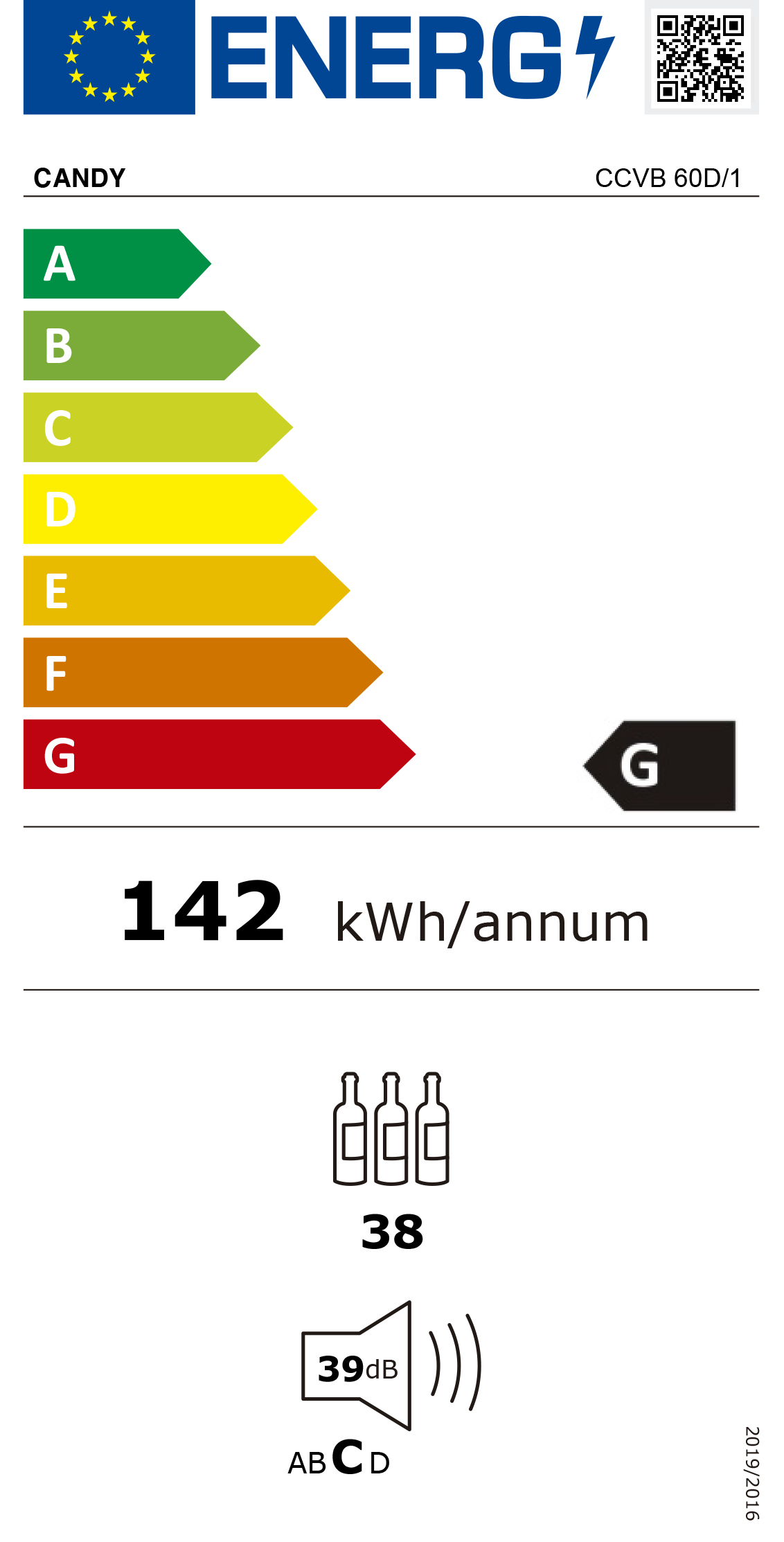 Consumo de energia anual: 142 kWh