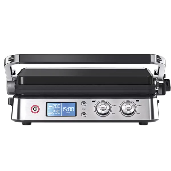 5 funções de cozedura: grelhador de contacto & sanduíche, grelhador aberto a 180º, função placa lisa, função placa ondulada e forno.