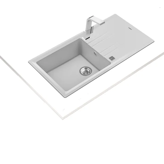 EncastreLava-louças de uma bacia e escorredorTegranito de alta resistênciaNão rugoso e fácil de limparVálvula automática de 3 ½”Profundidade da bacia: 200 mmMóveis de 60 cmMedidas (lxp): 1000x510mmCor: Branco