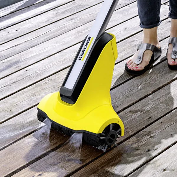 Equipamento: Duas escovas de rolos para superfícies de madeira; Dois bicos de água; Válvula para controlar o volume de água; Posição de armazenamento; Punho e punho ergonómicos
