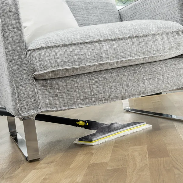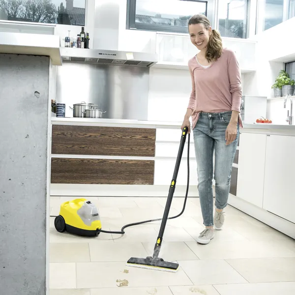 Equipamento: Regulação do caudal de vapor, na pega; Mangueira de vapor com pistola, 2 m; Funil integrado; Interruptor ligar/desligar integrado; Fecho de segurança à prova de crianças; Pano de microfibras para pavimentos; Cobertura de micorfibra para bocal manual; Arrumação de acessórios e posição de estacionamento; Válvula de segurança; 2 x 0,5 m tubos de prolongamento; Sistema de 2 depósitos