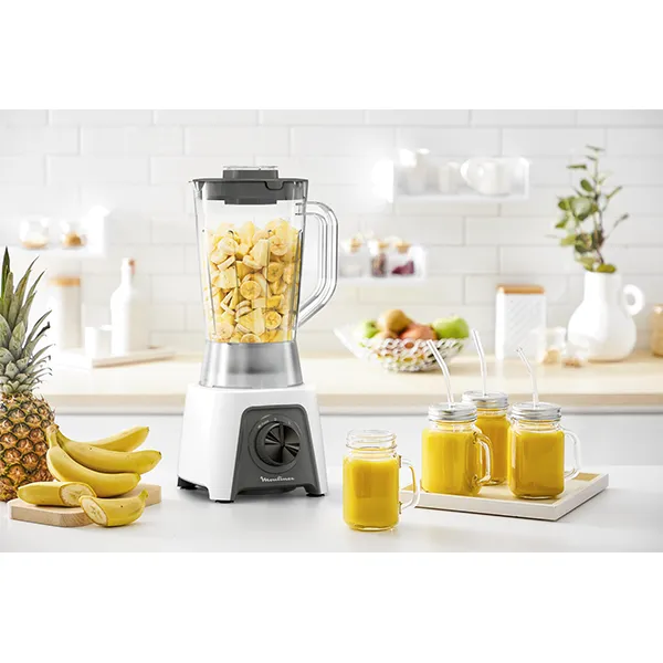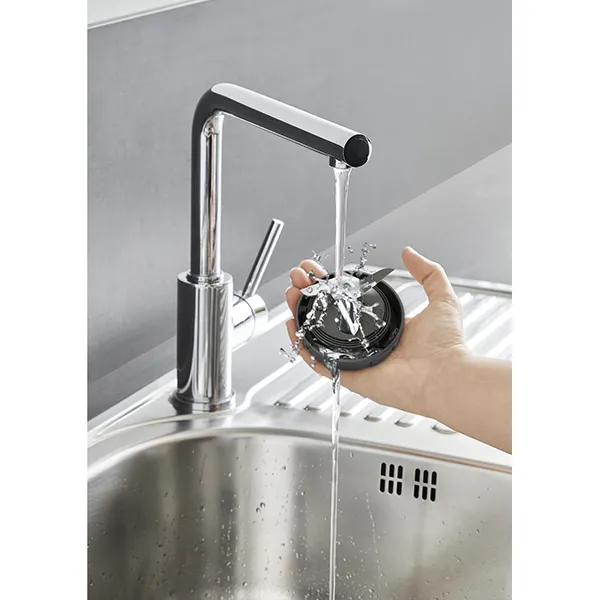 Potência: 450WCapacidade total: 1,5lts Capacidade útil: 1,25lts4 lâminas em inox Zelkrom amovíveis2 velocidades + pulseTampa doseadora
