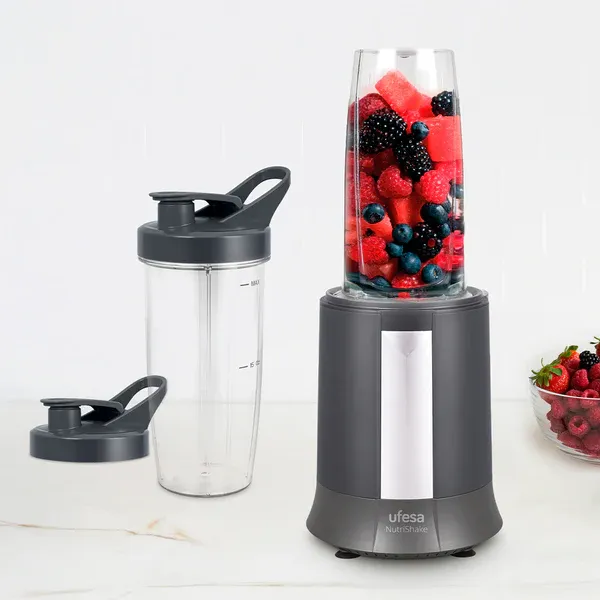 Inclui 5 acessórios: 2 garrafas de 800ml, lâminas para bater, 2 tampas para bebidas desportivas