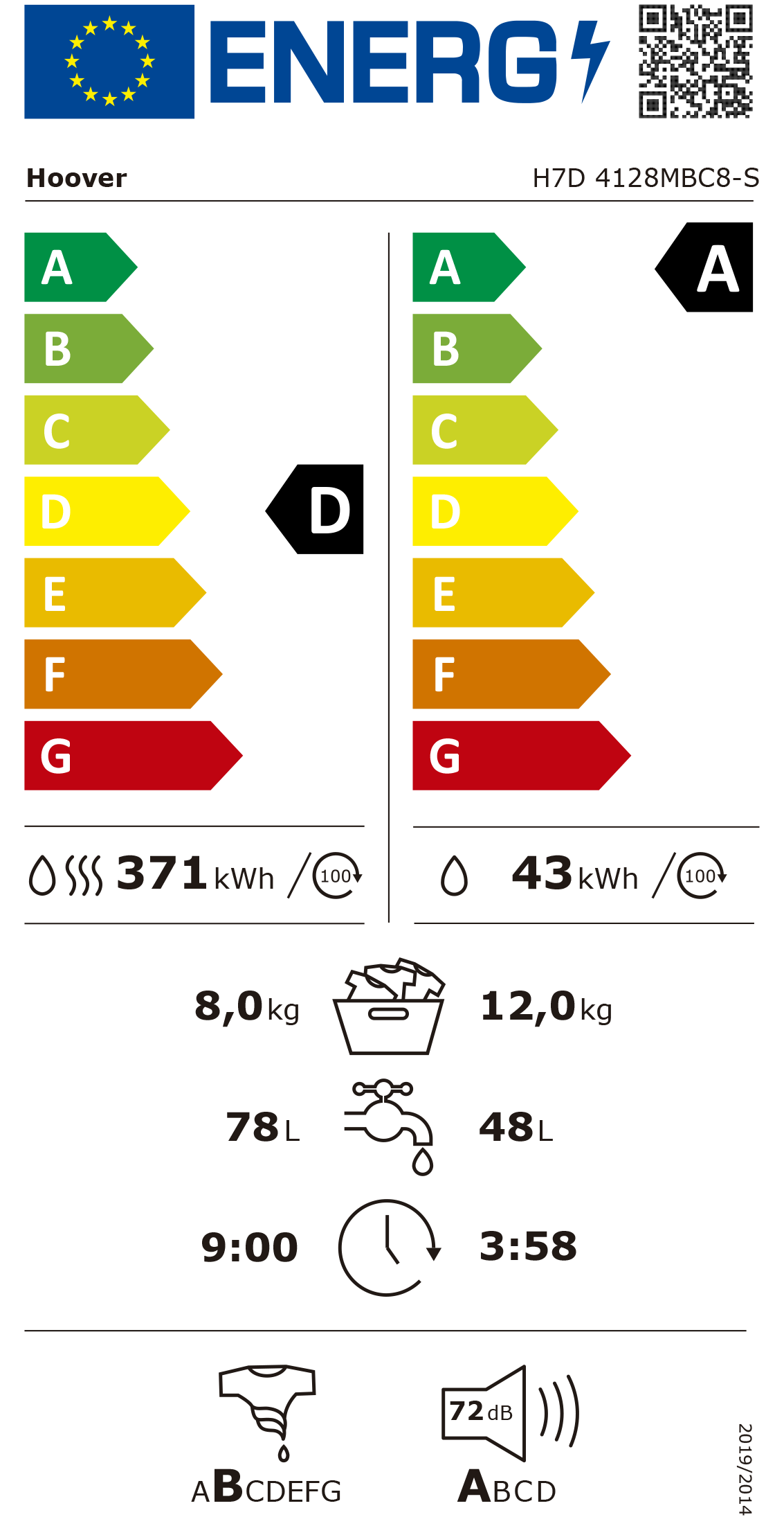 Classe de eficiência energética EEI (Lavagem e secagem): D