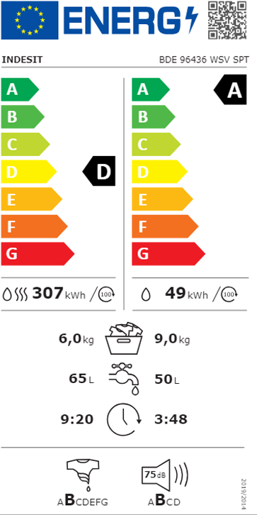Consumo de Energia (por 100 lavagens): 49/307 kWh