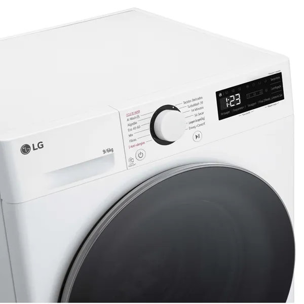 Programas de lavagem: AI Wash™ ; Algodão; Eco 40-60; Mix; Fibras; Anti-alergias; 14 minutos; Tecidos delicados; Algodão Rápido; Enxaguamento + Centrifugação; Lavagem + Secagem; Só secagem