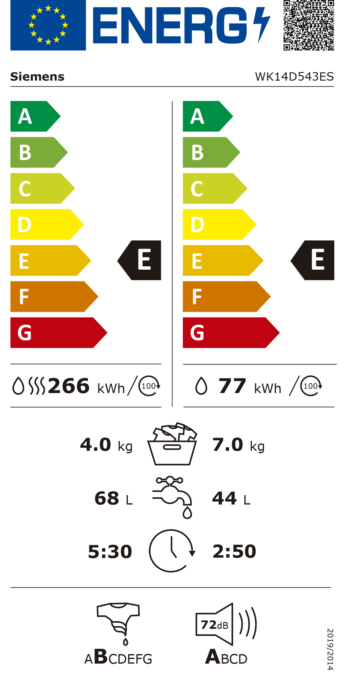 Classe de eficiencia energética Lavar e Secar: E