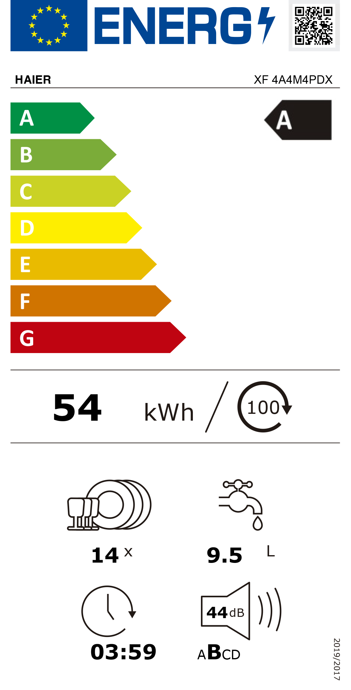 Consumo de água [por ciclo]: 9,5