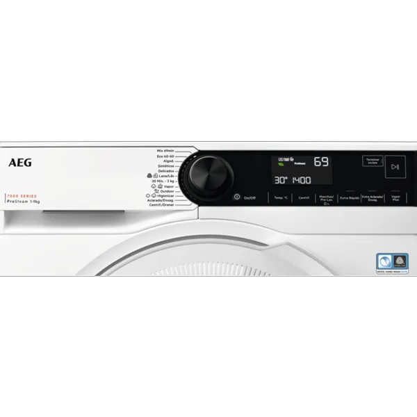 Lista de programas: MixLoad 69min, Eco 40-60, Algodões, Sintéticos, Delicados, Lãs, 20Min 3Kg, Vapor, Desporto, Hygiene, Enxaguamento, Centrifugação / Drenagem