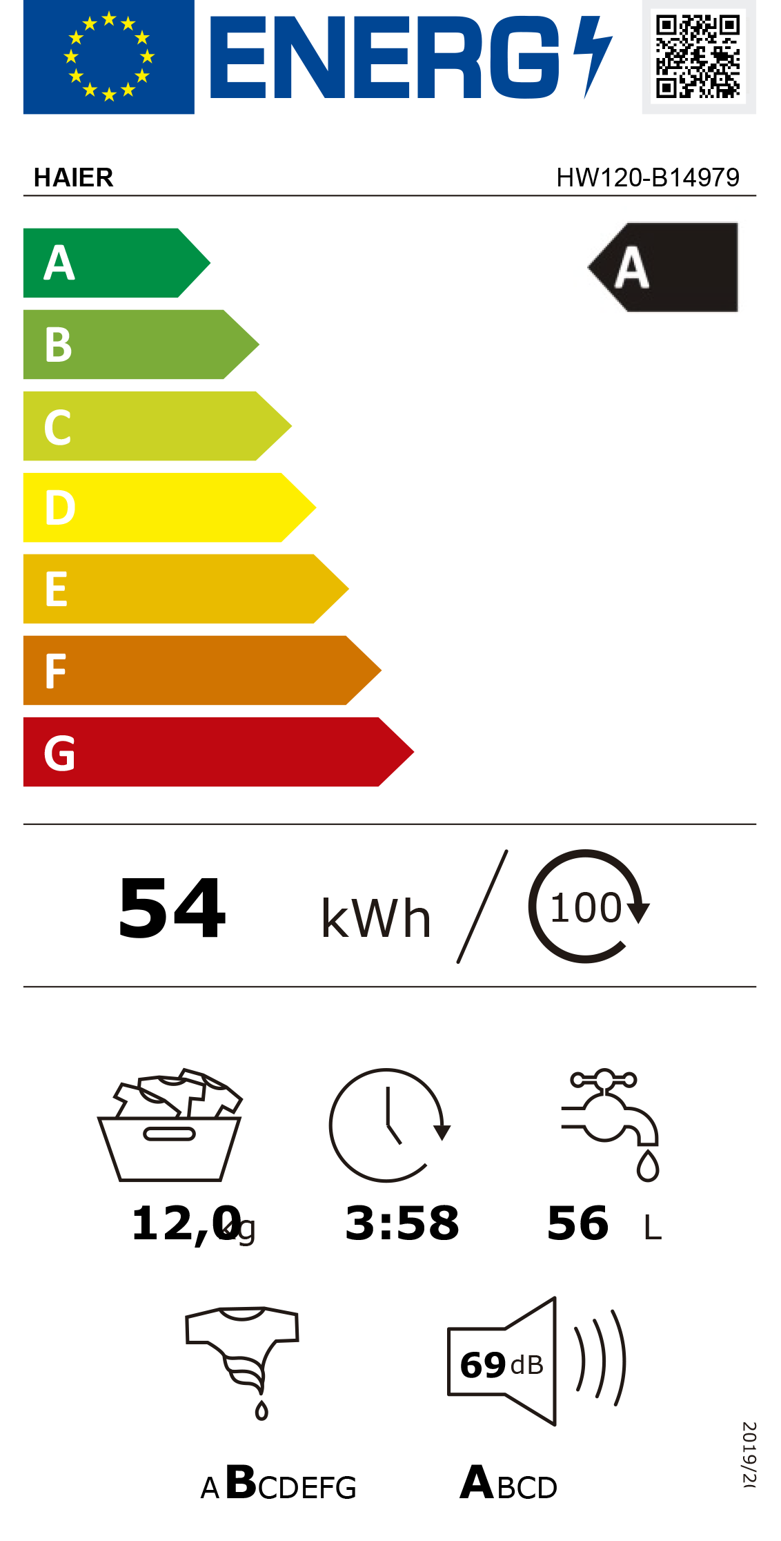 Consumo de energia ponderado [100 ciclos, eco 40-60]: 54