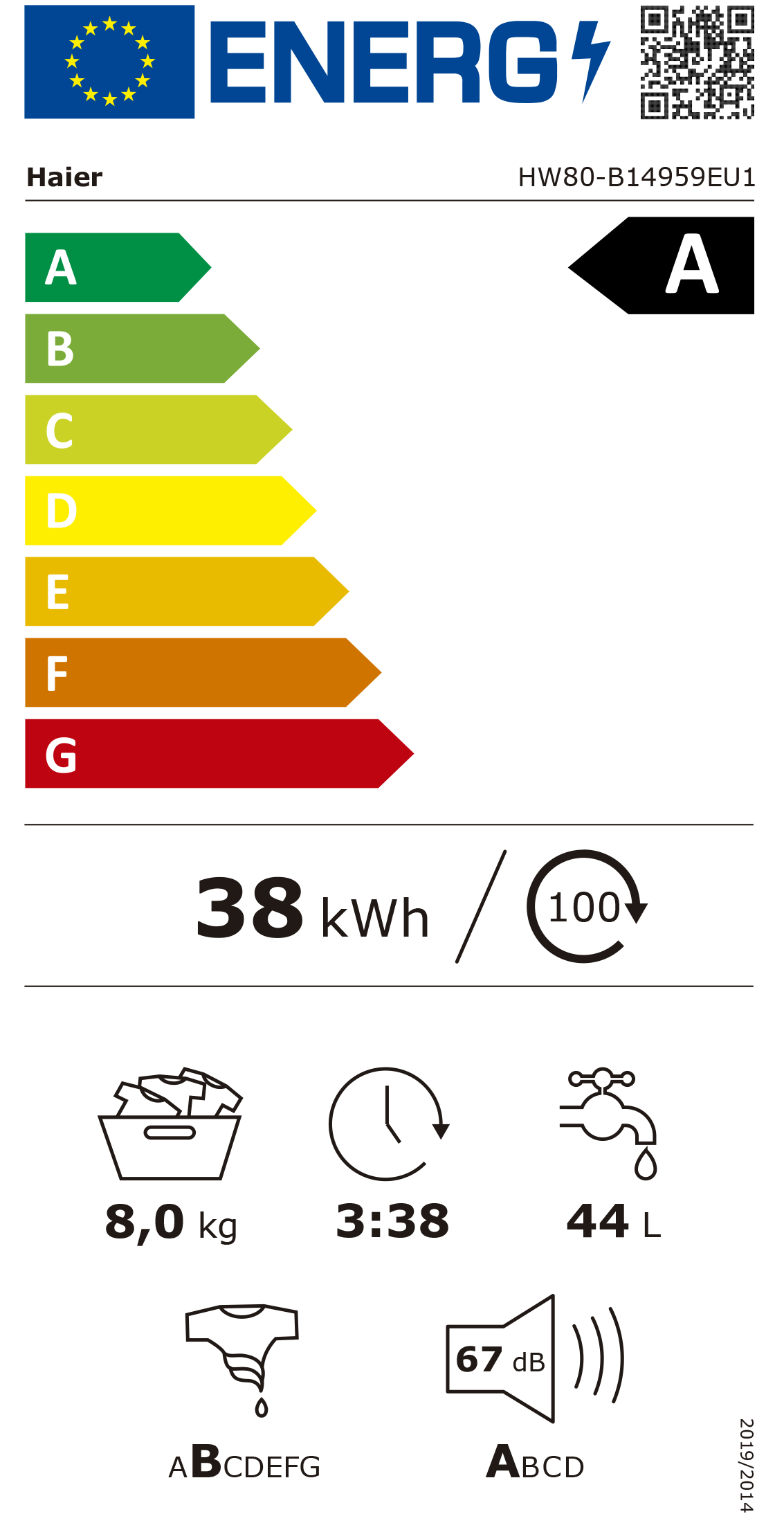Consumo de energia ponderado [100 ciclos, eco 40-60]: 38