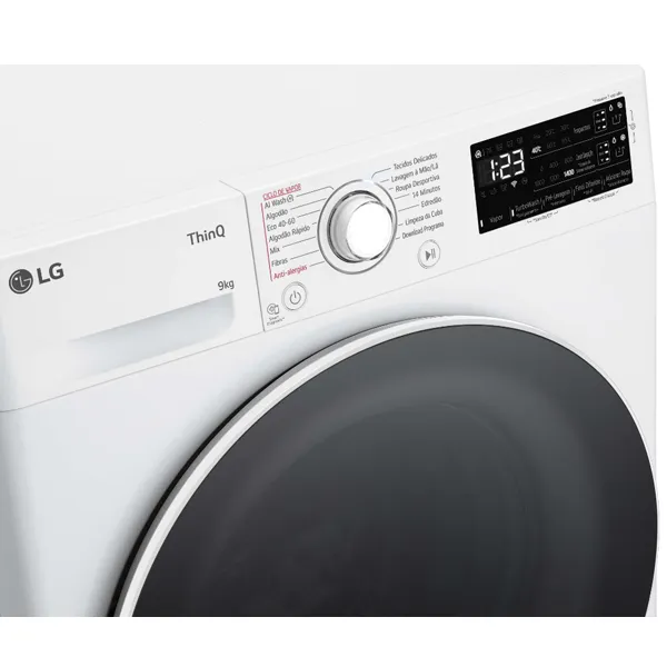 Programas de lavagem: AI Wash; Algodão; Eco 40-60; Mix; Fibras; Edredão; Limpeza da cuba; Anti-alergias; Tecidos delicados; Algodão Rápido; Roupa desportiva; 14 minutos; Lavagem à mão / Lãs;