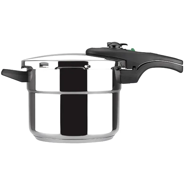 Frabricada em aço inoxidável Espessura: 1,2mm Capcidade: 4+6lts Apto para todos os tipos de fogões elétrico, a gás, vitrocerâmicos e de indução 5 sistemas de segurança Diâmetro: 22cm Fundo termodifusor
