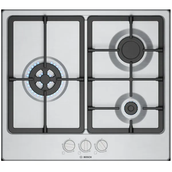 Atrás direita: queimador forte até 3 kW (dependendo do tipo de gás)