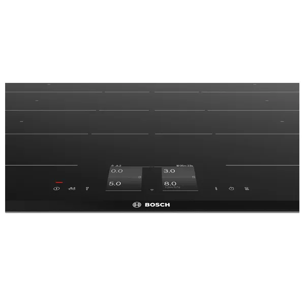 Zonas de cozedura de indução: 1 x Ø 400 mmx230 mm, 3.3 kW (nível de potência máx. 3.7 kW) ou 2 x Ø 200 mm, 2.2 kW (nível de potência máx. 3.7 kW); 1 x Ø 400 mmx230 mm, 3.3 kW (nível de potência máx. 3.7 kW) ou 2 x Ø 200 mm, 2.2 kW (nível de potência máx. 3.7 kW).