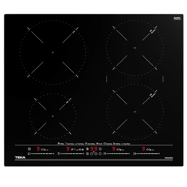 Funções diretas de cozinhado: iQuick Boiling, simmering, derreter, manter quente, grelhar, confitar, Deep Frying (fritar em óleo abundante – fritadeira (180ºC)), Pan frying (fritar em pouco óleo – frigideira (190ºC))