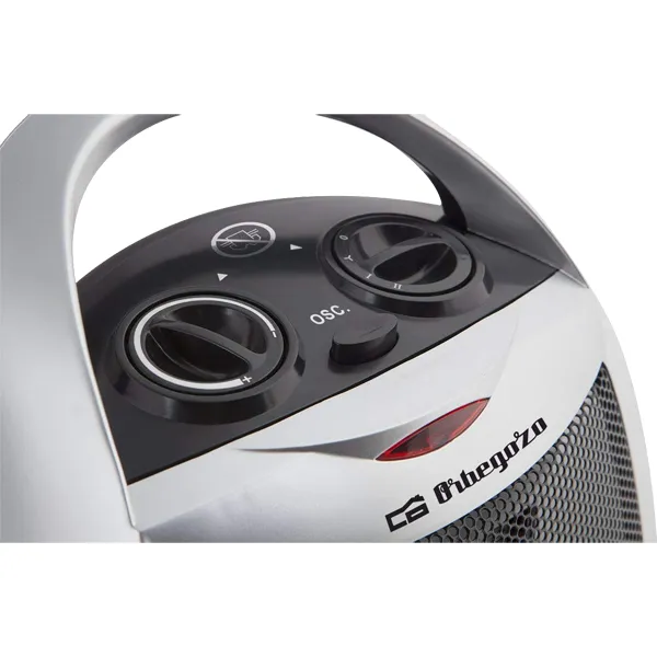Seletor rotativo com 3 posições: Função de ar frio; calor: 750 / 1500W.