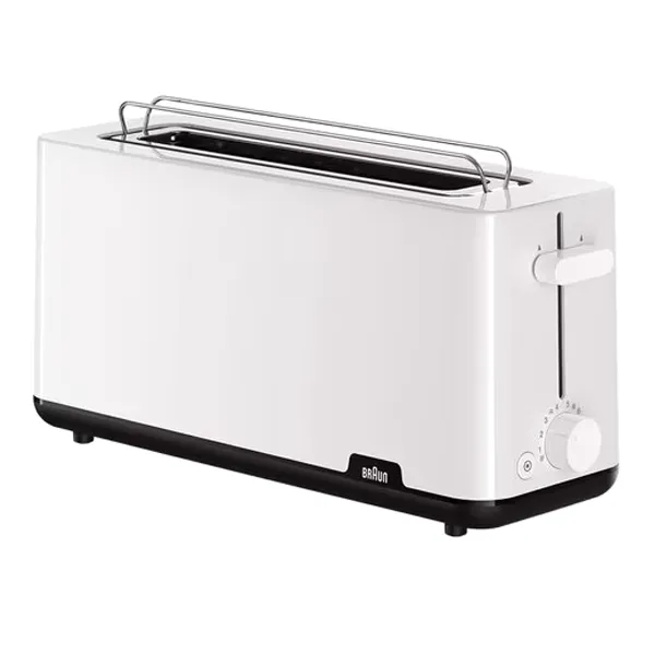 Potência: 1030W 1 abertura longa (25cm) Bandeja integrada de aquecimento Descongelação e reaquecimento de pão 8 níveis de tostagem Bandeja para migalhas Armazenamento do cabo Corpo exterior frio Desliga-se automaticamente